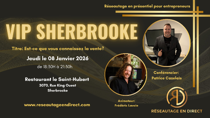 Commencez l'année en force ! Conférence : "Est-ce que vous connaissez la vente ?" par l'expert en vente Patrice Cazelais, Président et fondateur de Réseautage en Direct.